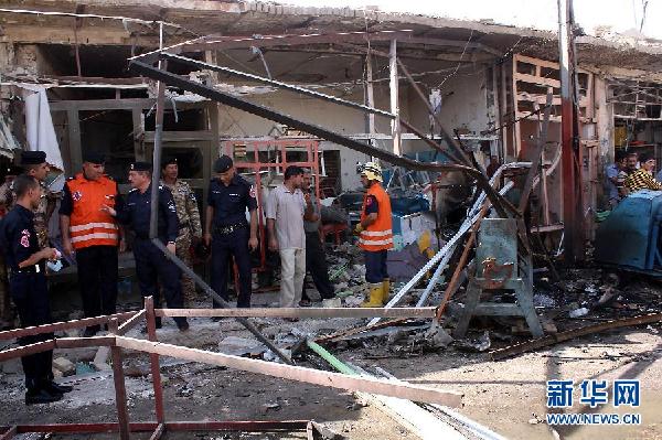 8月15日,伊拉克库特市安全人员检查爆炸现场。伊拉克警方说,伊瓦西特省库特市15日上午发生两起爆炸,已造成至少30人死亡,50多人受伤。库特是瓦西特省首府,距首都巴格达大约170公里,人口大约37万。新华社/法新