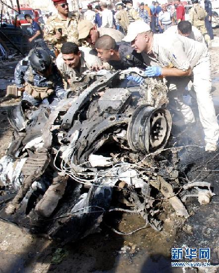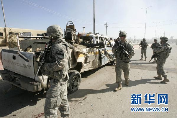 驻伊拉克美军士兵在伊东北部的基尔库克查看汽车炸弹爆炸现场。 新华社/路透