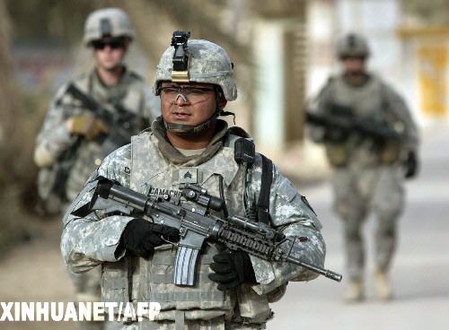 资料图片:2009年6月26日,美军士兵在伊拉克东北部城镇巴古拜巡逻。新华社/法新