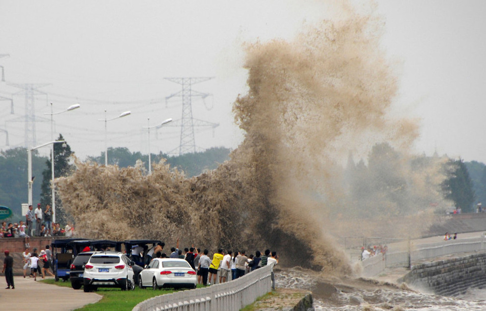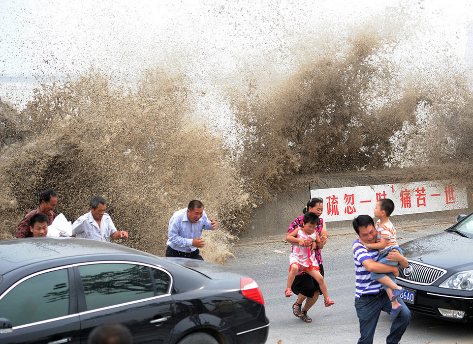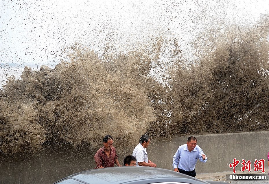 大概是知道今年潮水特别大,最近来看潮的人很多,连日来发生在钱塘江的溺水事件也是接二连三。记者了解到,8月14日,钱塘江大潮卷走了2人,其中1人侥幸生还;8月15日,钱塘江里发现一具浮尸;8月17日凌晨,钱塘江再次发生溺水事件,一名1995年出生的安徽籍少女不幸被夜潮卷走,至今下落不明。……几天来,至少已有3人水中丧生。图为8月17日,钱塘江大潮如期而至,观潮游客连忙躲闪。