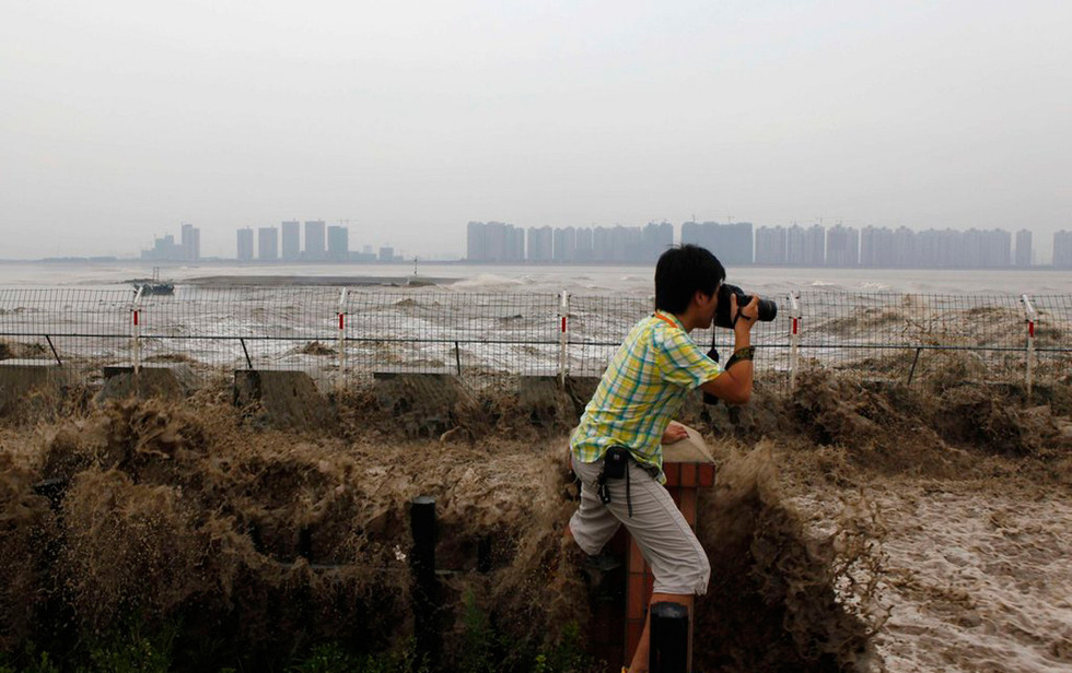 游客不顾危险观钱塘江大潮 已有3人丧命