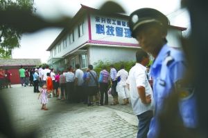 记者看到,东升乡科技管理站大门处,多名治安队人员和保安正在执勤。凡有家长走到门外,即会检查其是否有分流登记单,拿着登记单的家长,保安则打开小门放入,并迅速锁门。