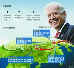 拜登此次访华是受中国国家副主席习近平的邀请。美国媒体普遍认为,拜登此行最重要的任务之一,是要强化与习近平之间的互动,从而进一步稳定中美两个大国之间的关系。