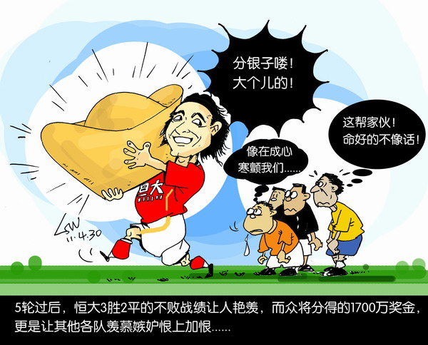 刘守卫漫画:恒大收1700万奖金 诸强羡慕嫉妒恨