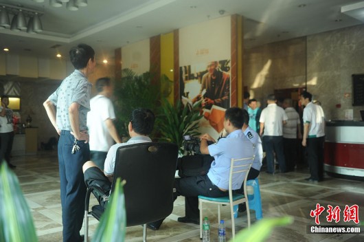 警方通报,19日下午2时20分重庆市江北区观音桥某汽车租赁公司,发生一起入室抢劫案。犯罪嫌疑人抢劫后逃逸,现场无人员伤亡。目前警方正在全力侦办此案。记者赶赴事发地看到,警察已经封锁了该楼,不少市民顶着烈日在一旁围观。曹多然 摄