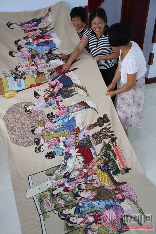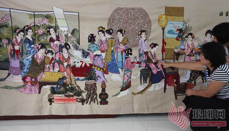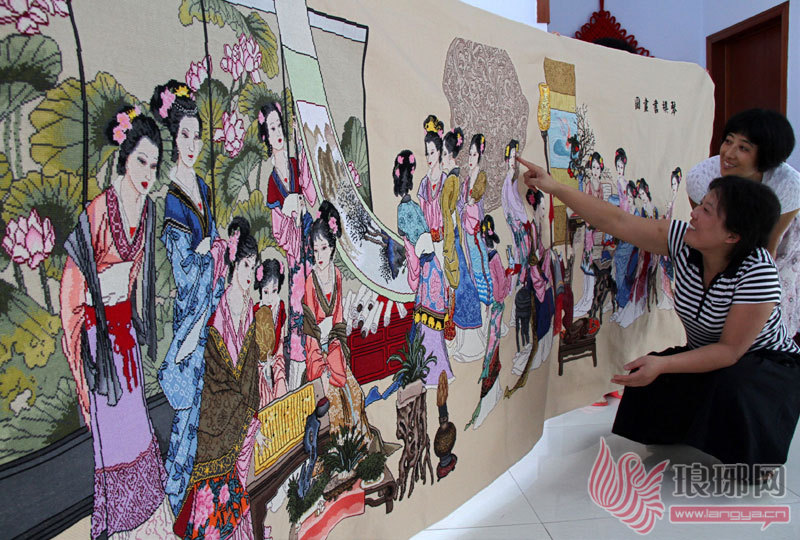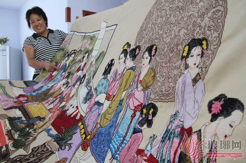 沂南下岗女工三年绣制巨幅十字绣《琴棋书画》