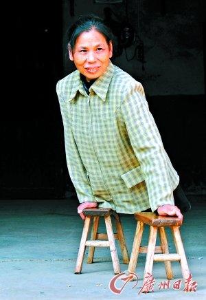 许月华需要靠双手支撑在板凳上实现行走。 新华社发