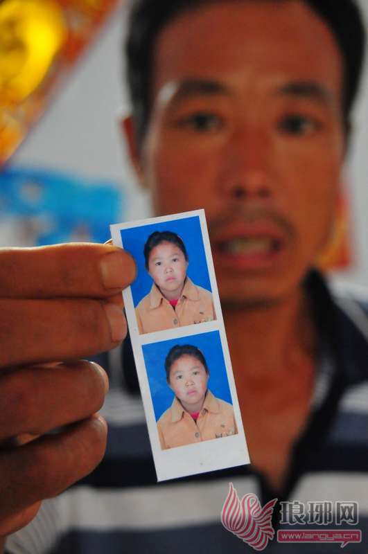 王丽红的爸爸王远东向记者展示王丽红的一寸照片。