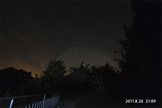 “在西边,一个巨大的气泡与地平线接壤。”虞骏说,从目视结果推测,气泡比月亮要大数百倍。并且,它逐渐膨胀。“我们都傻在当场,只知道盯着它看,甚至忘记了记录时间。”逐渐地,气泡慢慢变淡,直至消失。根据人们事后判断,这一过程大约持续了5分钟。虞骏说,后来才得知,他们并不是这起UFO事件的唯一目击证人。“在我们以东距离超过60千米的国家天文台兴隆观测基地,工程师马劲几乎在同一时刻发现了这个气泡。”最不可思议的目击报告来自数千公里外的上海空域。飞行员 “采姑娘的小蘑菇168”也在微博上报告说,发现不明巨大发光体。