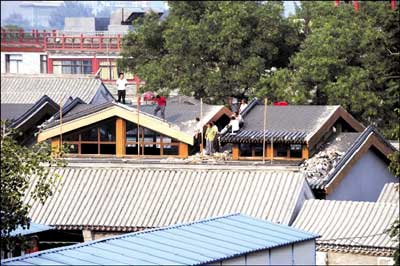 昨天,本山传媒官网发布声明:为了刘老根会馆8月16日开业仪式的需要,公司在北京小江胡同30号院内搭建临时罩棚供开业接待使用,原计划保留两周左右。但最近有相关人士对此罩棚提出了异议,认为对风貌有影响。我公司对此高度重视,决定提前将罩棚拆除,现施工人员已开始动工。