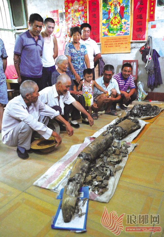 河东新近发现的古象牙门齿化石吸引了不少村民前来观看。记者 罗志强 摄