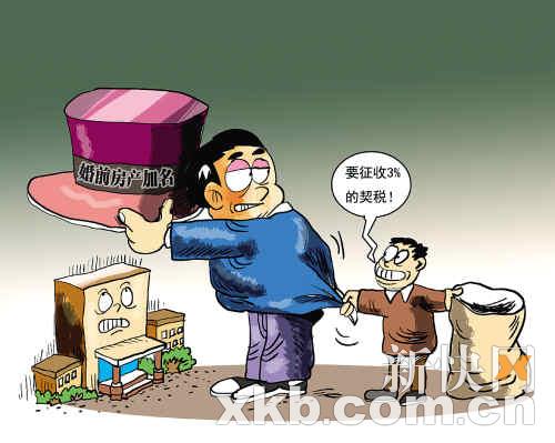 如果按照南京等城市的征税方法,具体的计税方式为“评估价格的一半×婚前房产契税税率3%”。具体计算过程为:王先生房子的价值为100万元,那么要把李小姐的名字加进产权证,应缴纳契税额为100万÷2×3%=15000元。 新快报记者 罗率