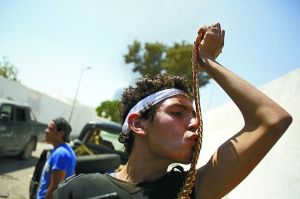 反对派武装人员在进入的黎波里的各个入口均设置了哨卡,盘查过往的每一辆当地车辆,只有外国记者的车能够不经检查通行。