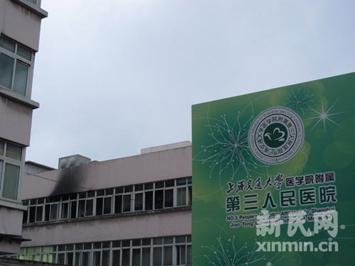 记者今晨赶到现场时,漠河路旁的外科病房大楼东侧,4层的裙房外墙被熏黑,从楼下望去,3楼的一排玻璃窗爆裂,室内焦黑一片。