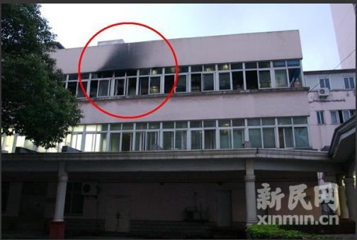 红圈内即为起火的手术室。记者 许明 摄