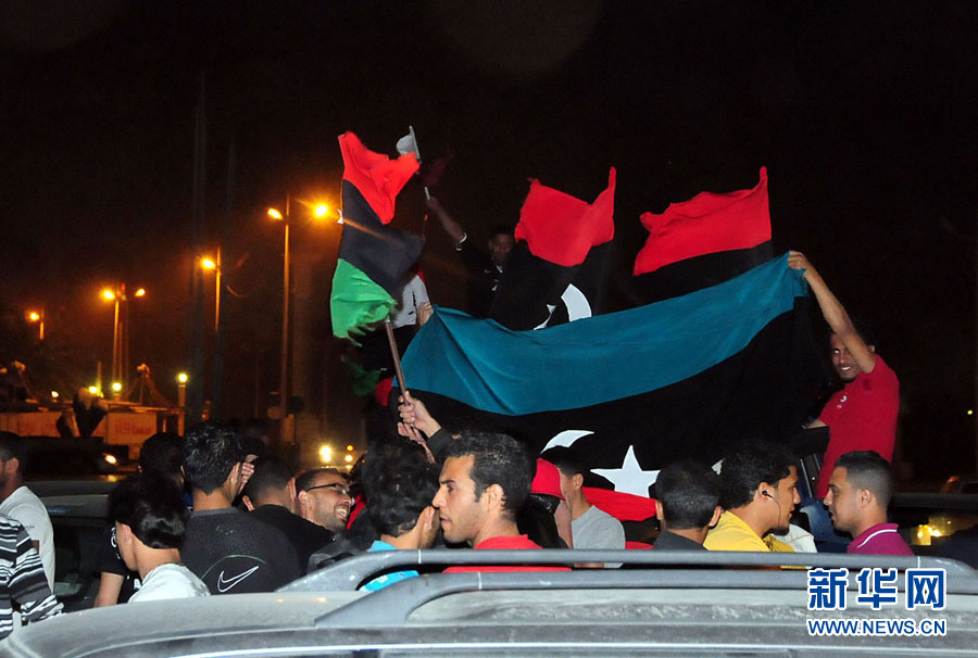 4月30日,利比亚反对派大本营班加西民众走上街头庆祝。新华社记者李远摄