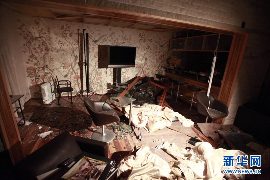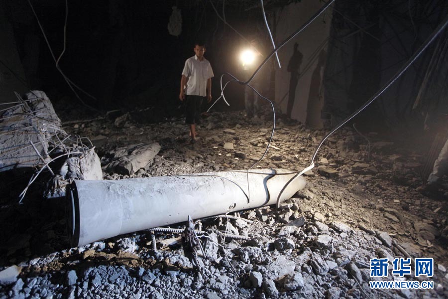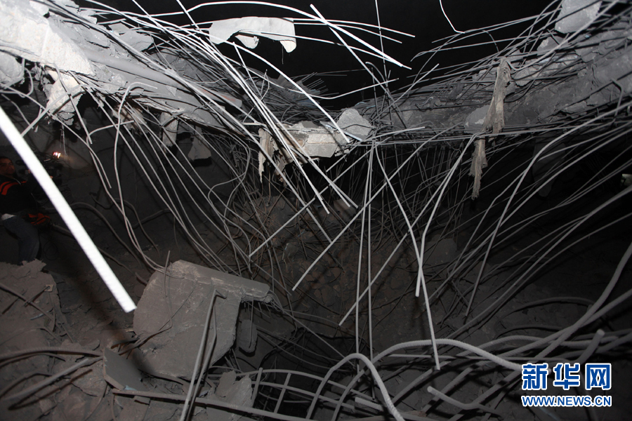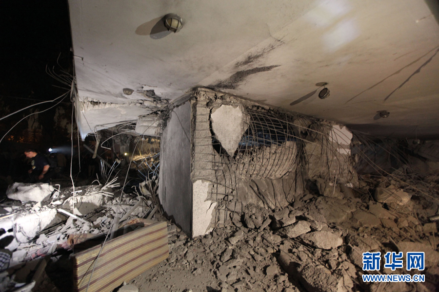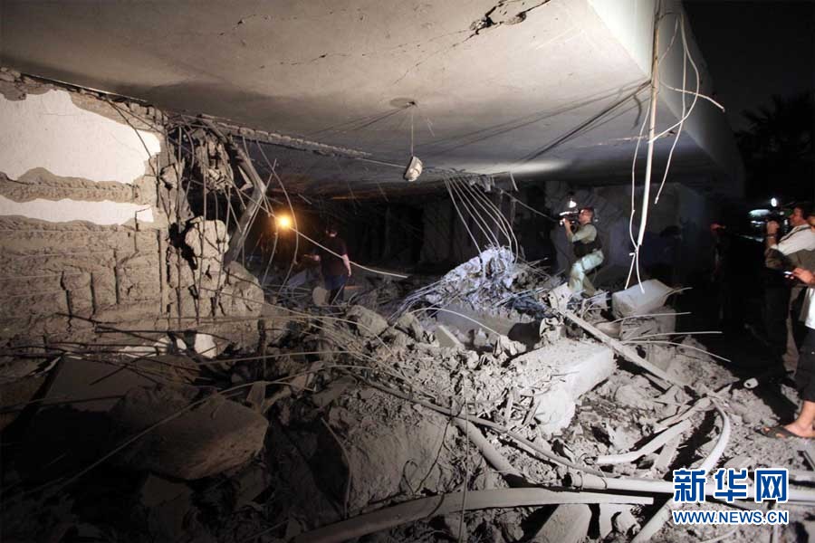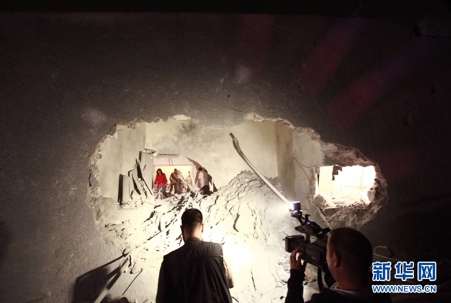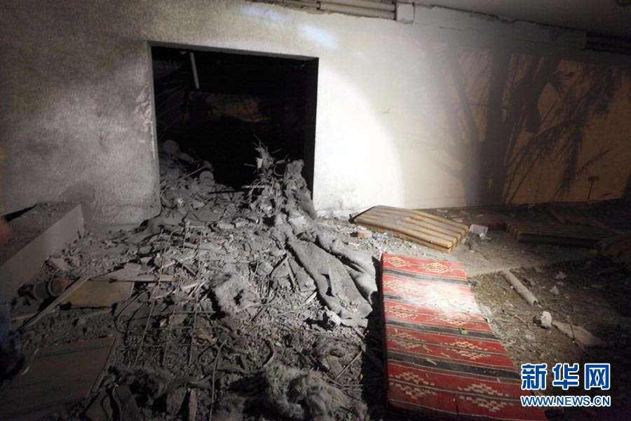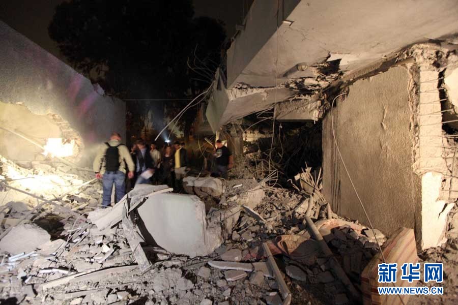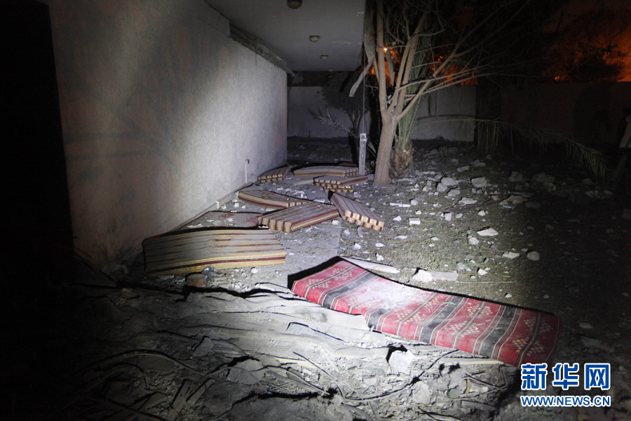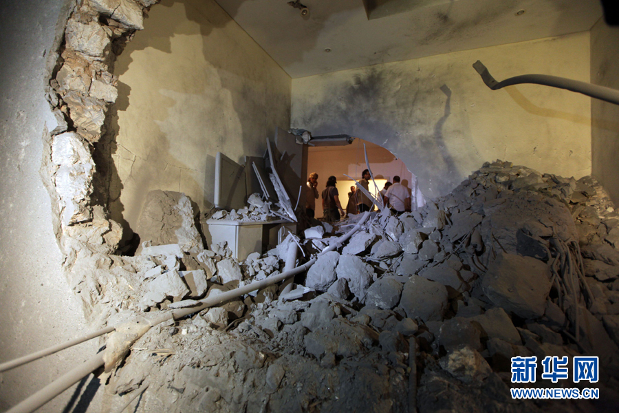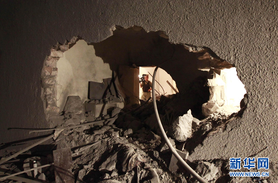 这是5月1日凌晨在利比亚首都的黎波里拍摄的空袭过后利比亚领导人卡扎菲的住宅。新华社发