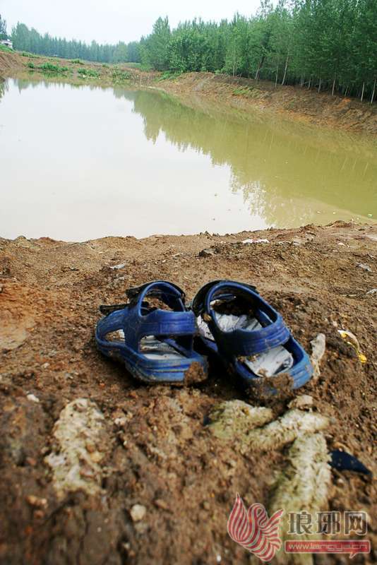 孩子的鞋还放在水塘边。