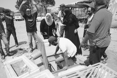 利比亚反对派武装27日在阿齐齐亚兵营内查看一条通道。新华社发