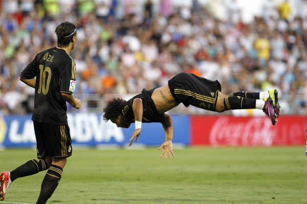 C罗卡卡联袂爆发 皇马铁卫进球后翻跟斗
