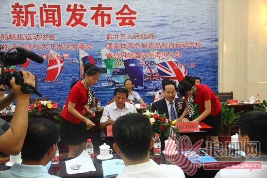 中国临沂首届帆船公开赛大赛组委会与赛事总冠名企业冠亚(临沂)置业有限公司合作签约。