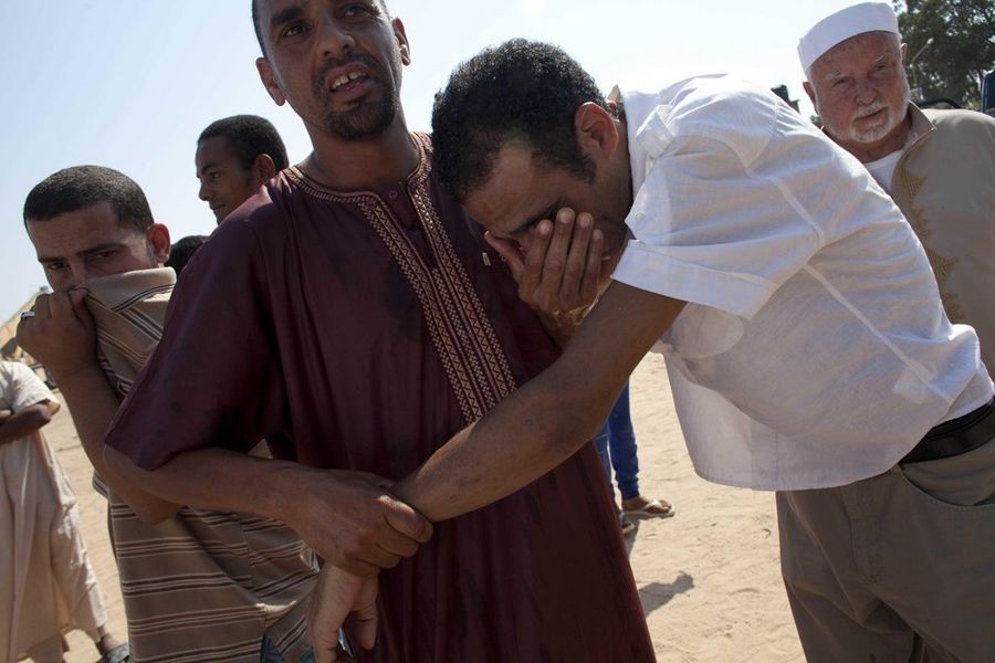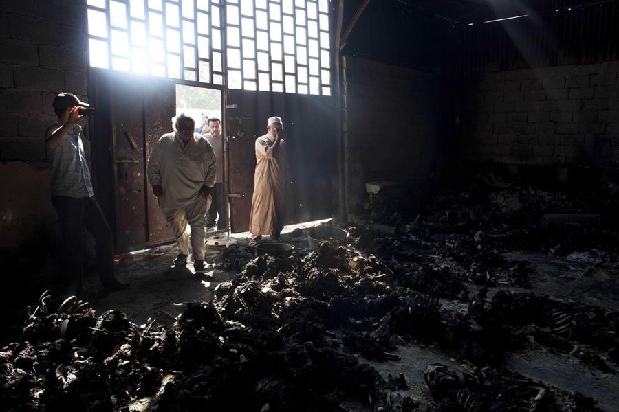 当地时间8月28日,利比亚的黎波里,在一仓库内发现53具烧焦的尸体。据幸存者说,是卡扎菲亲信在8月24日和25日所为,他们在棚内射杀被捕人士,然后扔手榴弹引发燃烧。