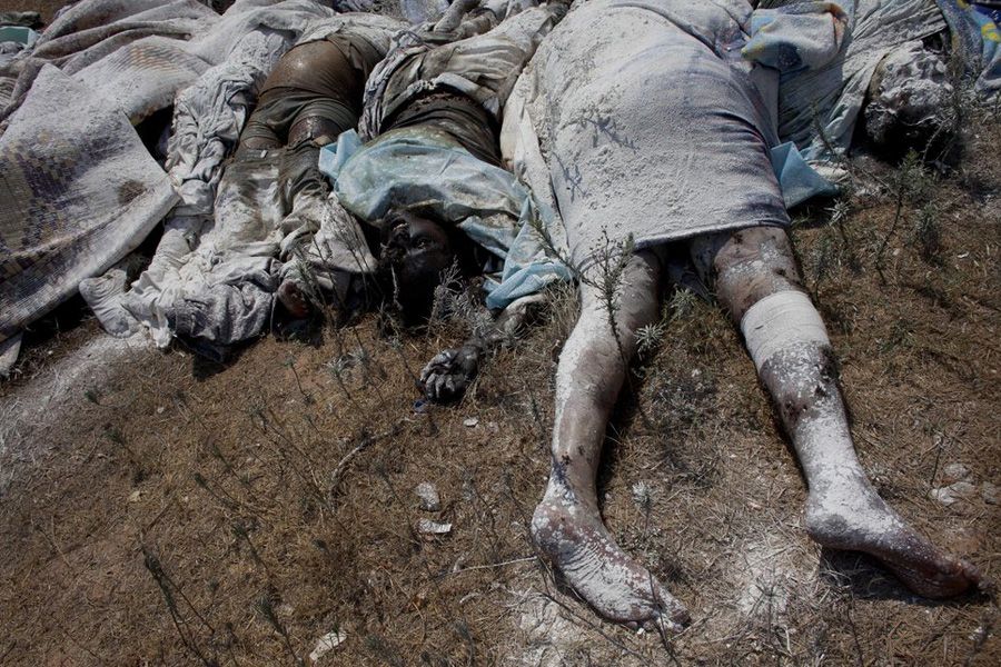 穆阿耶德·布拉尼自称是一名“幸存者”。他说,政府军23日和24日用冲锋枪、手榴弹处决犯人,而后一把火将死者“付之一炬”。人权国际组织警告,已经掌握证据,显示政府军和反对派双方都存在虐待俘虏的嫌疑。图为洒满石灰的尸体。