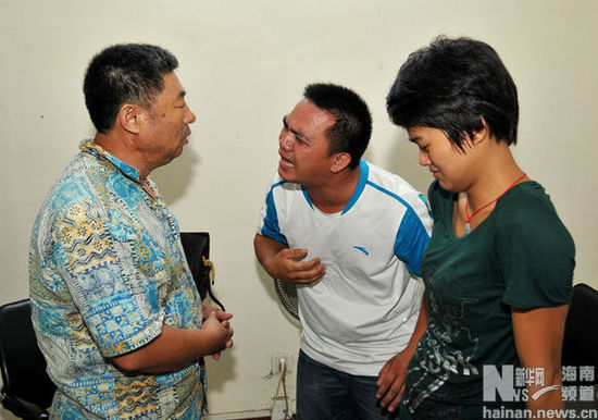 幼童家长(右一、右二)痛不欲生。左一为博爱双语幼儿园负责跟校车的王长文。(8月29日摄)新华社记者 侯建森 摄