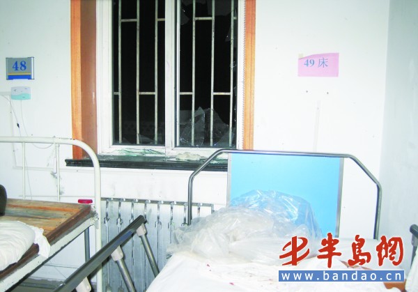 还没来得及清理和消毒的隔离间里,窗玻璃被砸碎,床上有血迹。