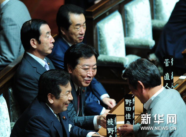 8月30日,日本民主党新代表野田佳彦(前左二)在东京出席众议院全体大会。当日,日本执政的民主党新代表(党首)野田佳彦在国会众议院首相指名选举中当选新一届首相。新华社记者季春鹏摄