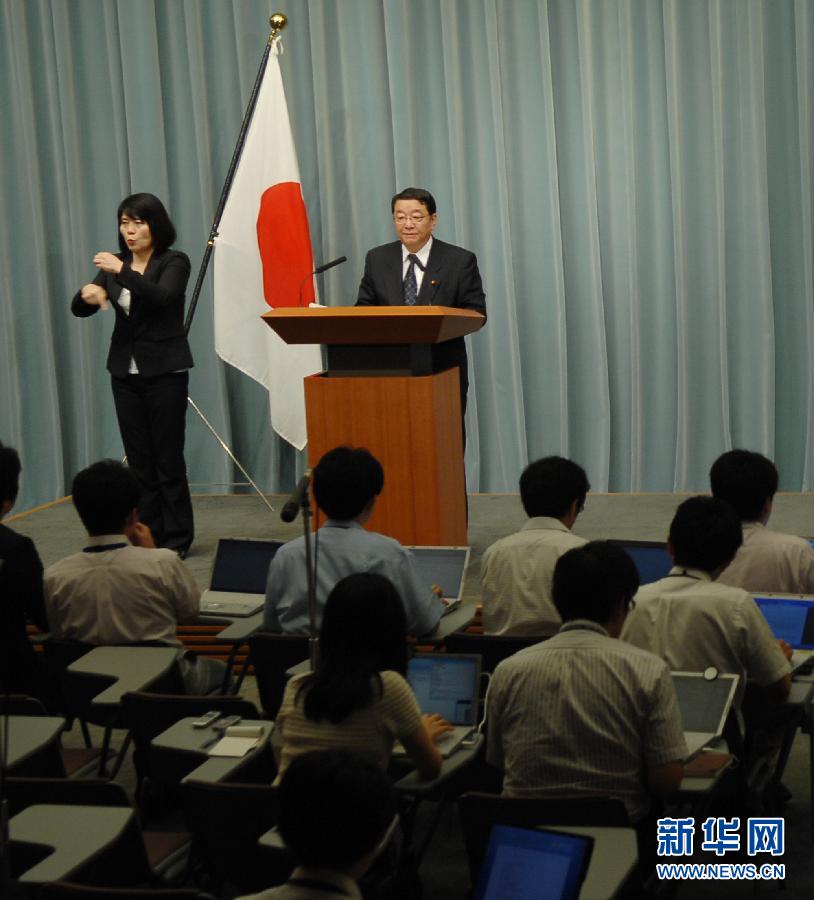 9月2日,在日本东京首相官邸,新内阁官房长官藤本修(中上)在记者会上宣布新内阁名单。 当天上午,日本首相野田佳彦组建新一届内阁。 新华社发(关贤一郎摄)