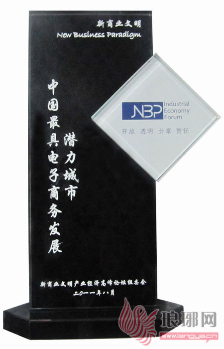 中国最具电子商务发展潜力城市奖杯。