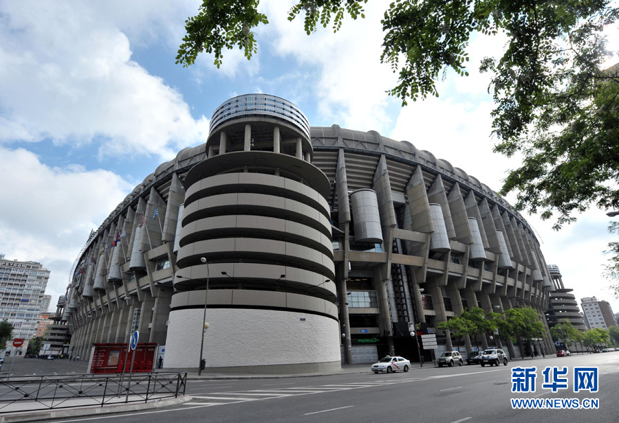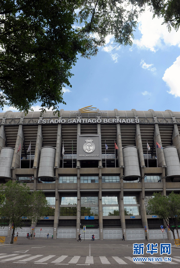 皇家马德里足球俱乐部(Real Madrid Club de Fútbol,简称为皇马)是一家位于西班牙首都马德里的足球俱乐部,成立于1902年3月,是现今欧洲乃至世界足坛最成功的俱乐部,2000年12月11日国际足球联合会选出皇家马德里为20世纪最伟大的俱乐部。皇家马德里在历史上曾经夺得过9次欧冠冠军,是目前赢得最多欧冠冠军的俱乐部。而本土方面一共夺得31次西班牙甲级联赛冠军及18次西班牙国王杯冠军。图为皇家马德里俱乐部主场——伯纳乌球场(5月1日摄)。新华社记者陈海通摄