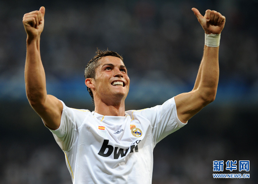 图为2009年9月30日,皇家马德里队球员C·罗纳尔多在伯纳乌球场庆祝进球。新华社记者陈海通摄