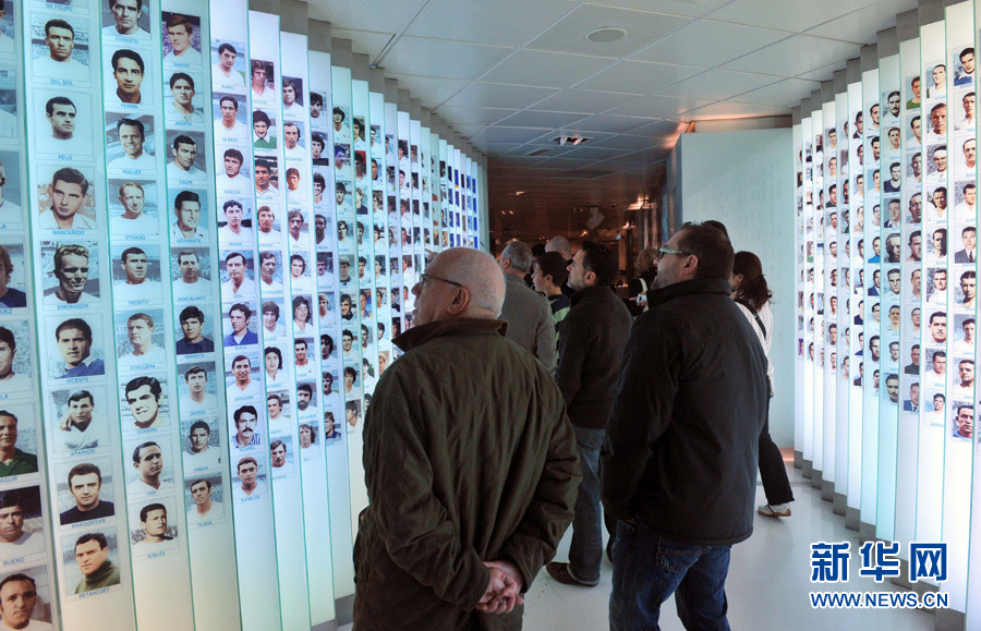图为5月1日,球迷在伯纳乌球场内参观。新华社记者陈海通摄