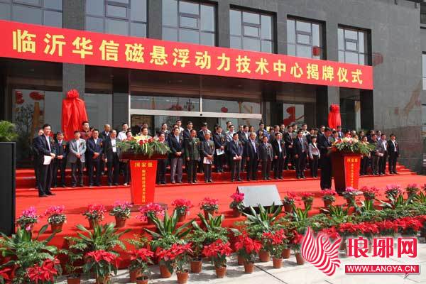 5月1日上午,临沂华信磁悬浮动力技术中心揭牌仪式现场。