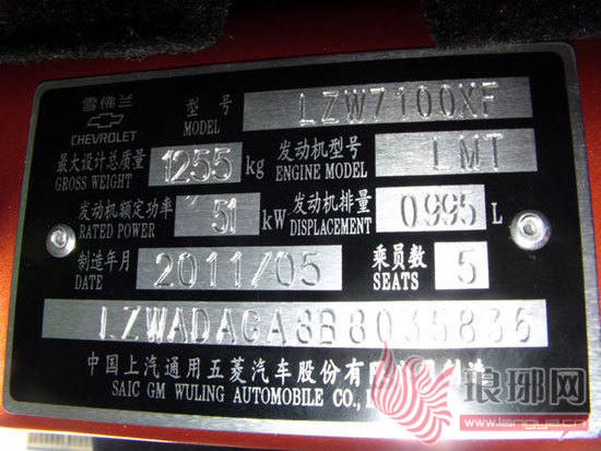乐驰车的铭牌。