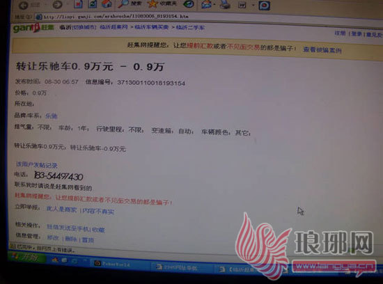 网上发布的转让车信息。
