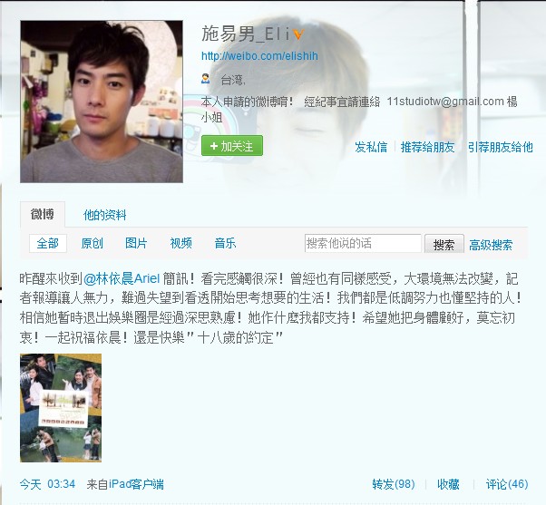 抱歉,有些激动了,但名誉需要捍卫,最基本的立场需要表明。知道自己的个性始终不适合娱乐圈,所以心态上挣扎得特别辛苦,让周围的人也辛苦了~谢谢你们陪我走到现在,无论之后有没有那个缘份继续走下去,依晨都感到很幸福~曾经与你们相遇……。