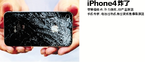 让袁先生如此无奈的原因很简单,他说,自己半年前买了iPhone4手机,可半个月前一次接电话,讲了十多分钟后,iPhone4的后盖突然炸裂了。