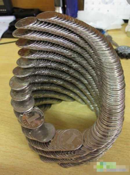 熊同学告诉记者这些神奇建筑的来源:8月30日早晨,“力学哥”起床,看着自己攒了两年的三四百枚1元硬币,儿时搭积木、搭麻将牌的手感突然上身,他将硬币一枚枚从书桌中心开始,递进式地摆起,一层层、一阶梯一阶梯地往桌边垒。大约20分钟后,一个有1/4“身段”悬在空中的梯田状硬币建筑诞生了。“力学哥”用相机拍下了这个小玩意,放在自己“人人网”上的相册里,这个帖子起名“我也来炫富”价值好几百呢!