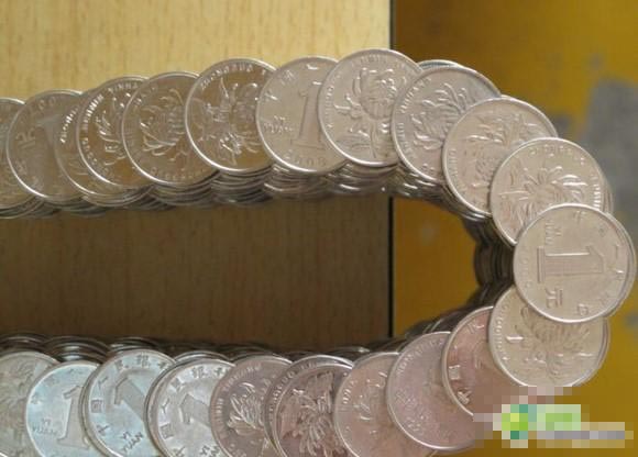 几百枚1元硬币被当做“砖头”,错落有致地搭建起梯田状的、伦敦大桥状的,甚至还有机械章鱼相貌的硬币“建筑物”,是不是很牛逼?