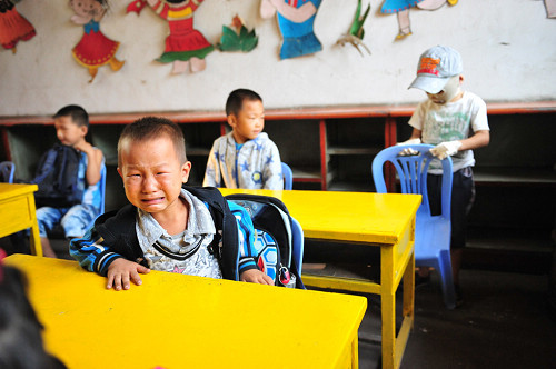 一开始,湘湘对教室还有些陌生,独自蹲在门口,过了一小会儿,他就融入到了小伙伴中间,在同桌的帮助下学习书本上的知识,还和小伙伴分享他书包里的玩具。这个时候,一直在教室外面看着湘湘的王寿武总算放下心来。