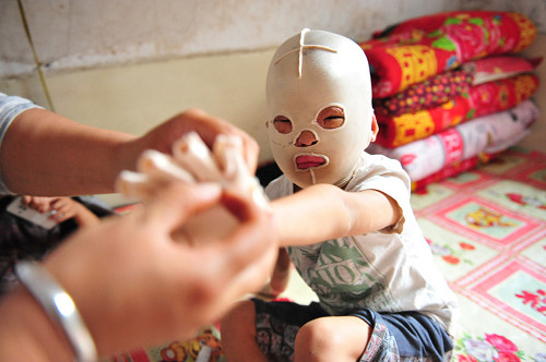 目前,湘湘气管的肉芽还没有好转,脸上也长起了细小的肉芽。湘湘的爸爸妈妈预计过三四个月还要带他去北京复查。