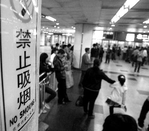 “候车大厅里有吸烟区吗?”记者咨询二层值班站工作人员。“没有,要抽去楼外抽。”工作人员声明,吸烟罚款50-500元。然而记者在候车室内见到的四五位烟民,没有一个因吸烟受到处罚。晨报记者 徐晶晶 张璐