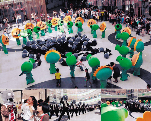 9月3日14时,沈阳市铁西区某商场突然聚集了一群打扮怪异的人。一拨是豌豆射手、向日葵,一拨是形态各异的僵尸,大家跟着节奏,随音乐起舞。“是商场搞活动吧?”周围的人们议论纷纷。但这一切只持续了短短5分钟便戛然而止,刚刚还在热舞的“植物”和“僵尸”突然散开,消失在商场的人群中。