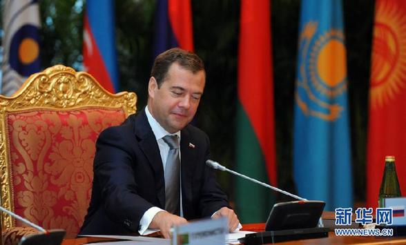 9月3日,在塔吉克斯坦首都杜尚别,俄罗斯总统梅德韦杰夫出席独联体国家元首理事会会议。当日,独联体元首理事会会议在杜尚别举行,会议通过了《关于落实〈独联体后续发展构想〉的主要行动计划》等一系列跨国合作协议,合作内容涉及防空、移民、反恐等领域。新华社发