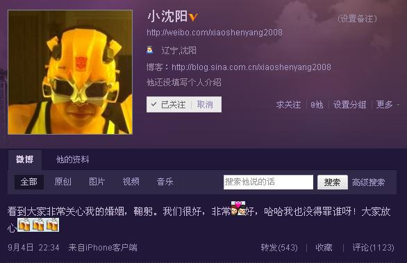 小沈阳微博截图