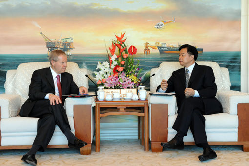 王宜林与康菲石油公司董事长穆怀礼会谈。(记者 张远高 摄)