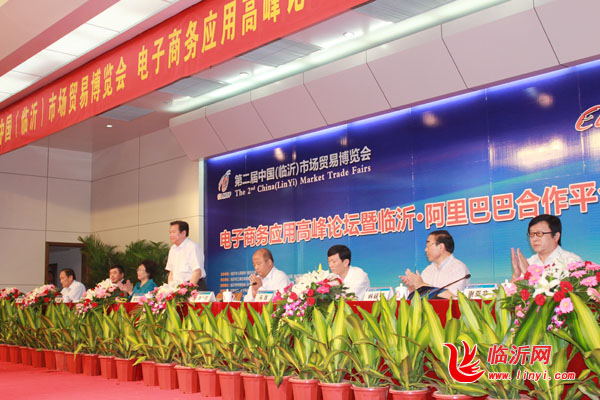 临沂网讯 2011年9月6日下午14:50,临博会电子商务应用高峰论坛暨临沂·阿里巴巴合作平台开通仪式在临沂大学沂蒙大讲堂正式开幕,由临沂市人民政府、临沂大学、临博会组委会主办,临沂市工商局、阿里巴巴(中国)网络技术有限公司、临沂商城电子商务有限公司承办。